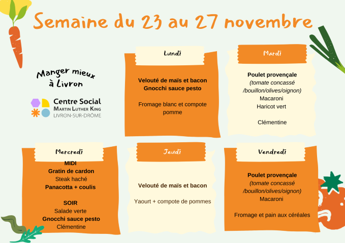 Le mardi, accompagnez de macaroni et d'haricots verts, avec en dessert une clémentine.
